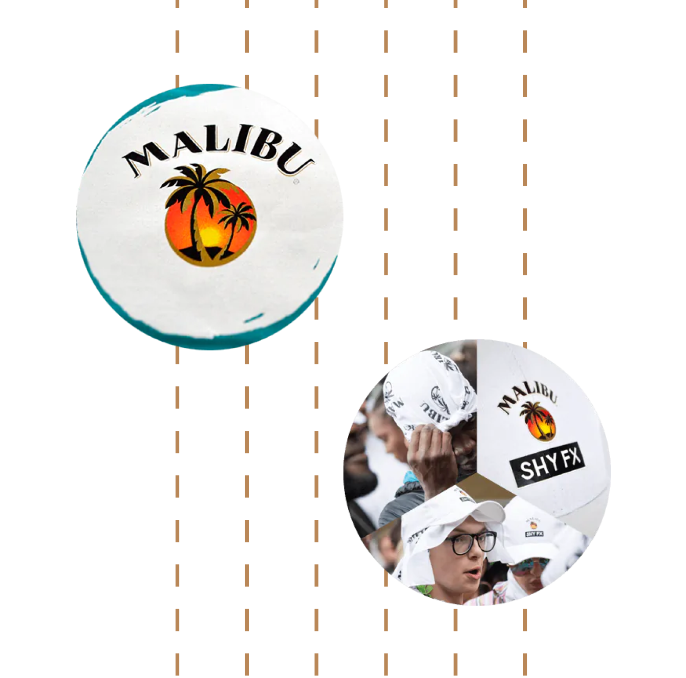 Malibu was preparing to make a splash at the world-famous Notting Hill Carnival, featuring a high-profile performance by Shy FX. The brand needed eye-catching, full-color merchandise that aligned with its vibrant identity— while meeting sustainability standards and turning around production in just nine working days ahead of a major bank holiday